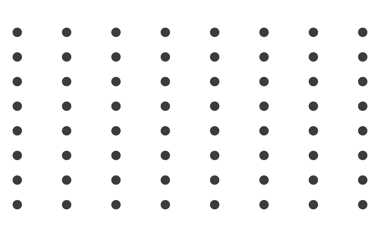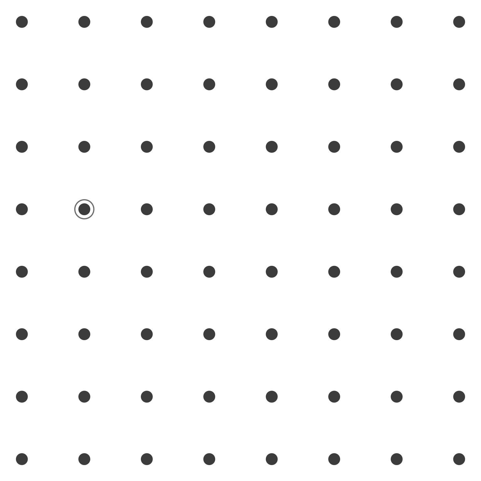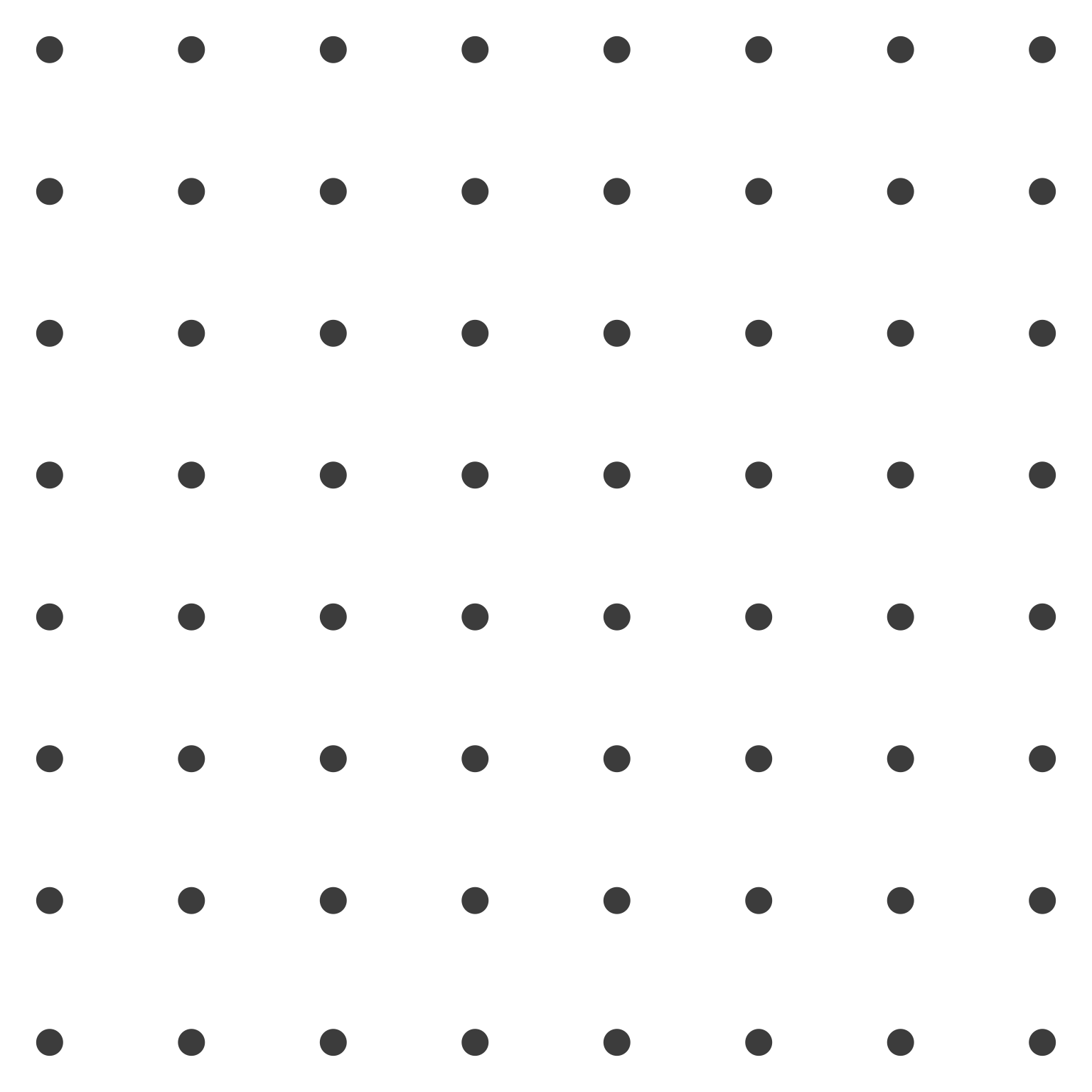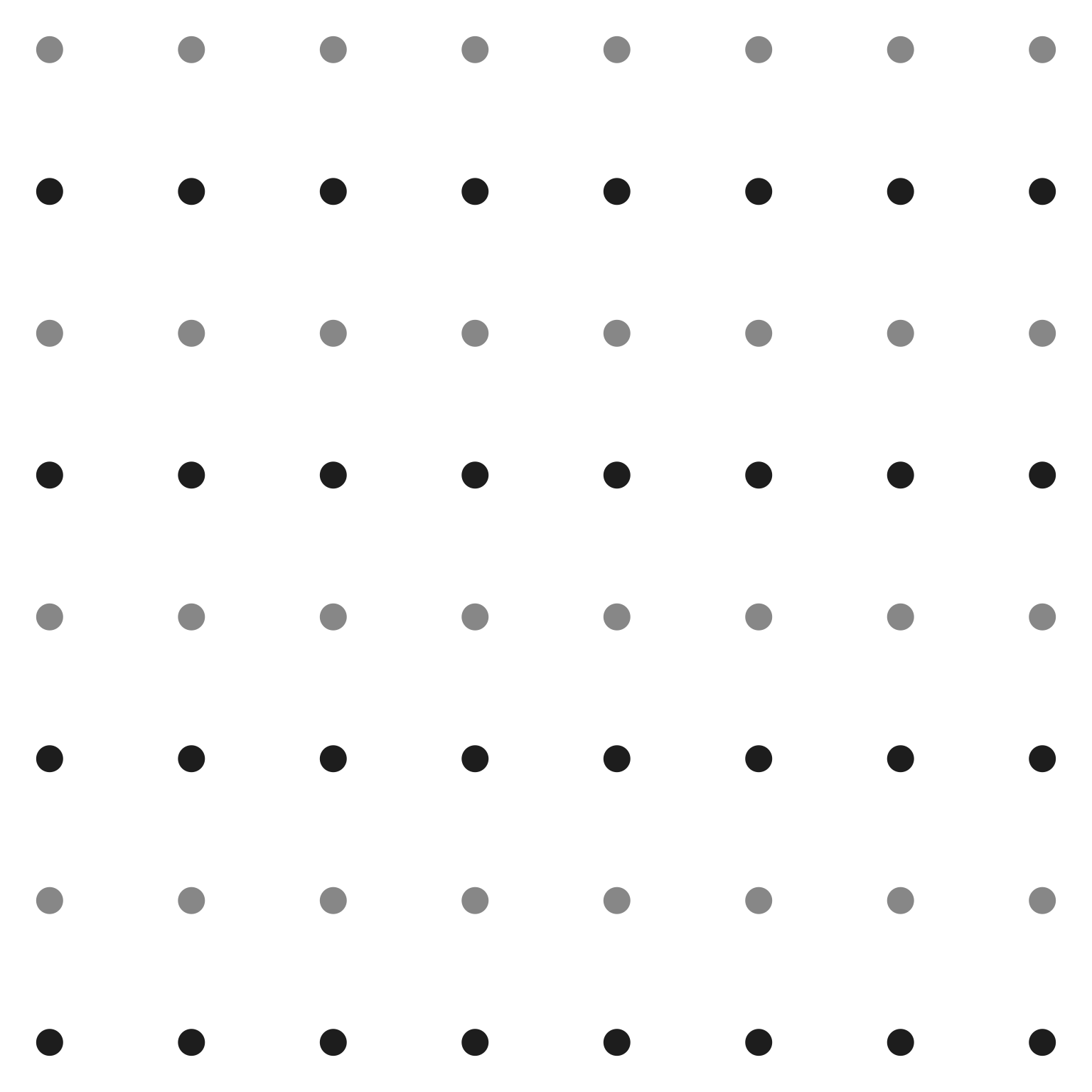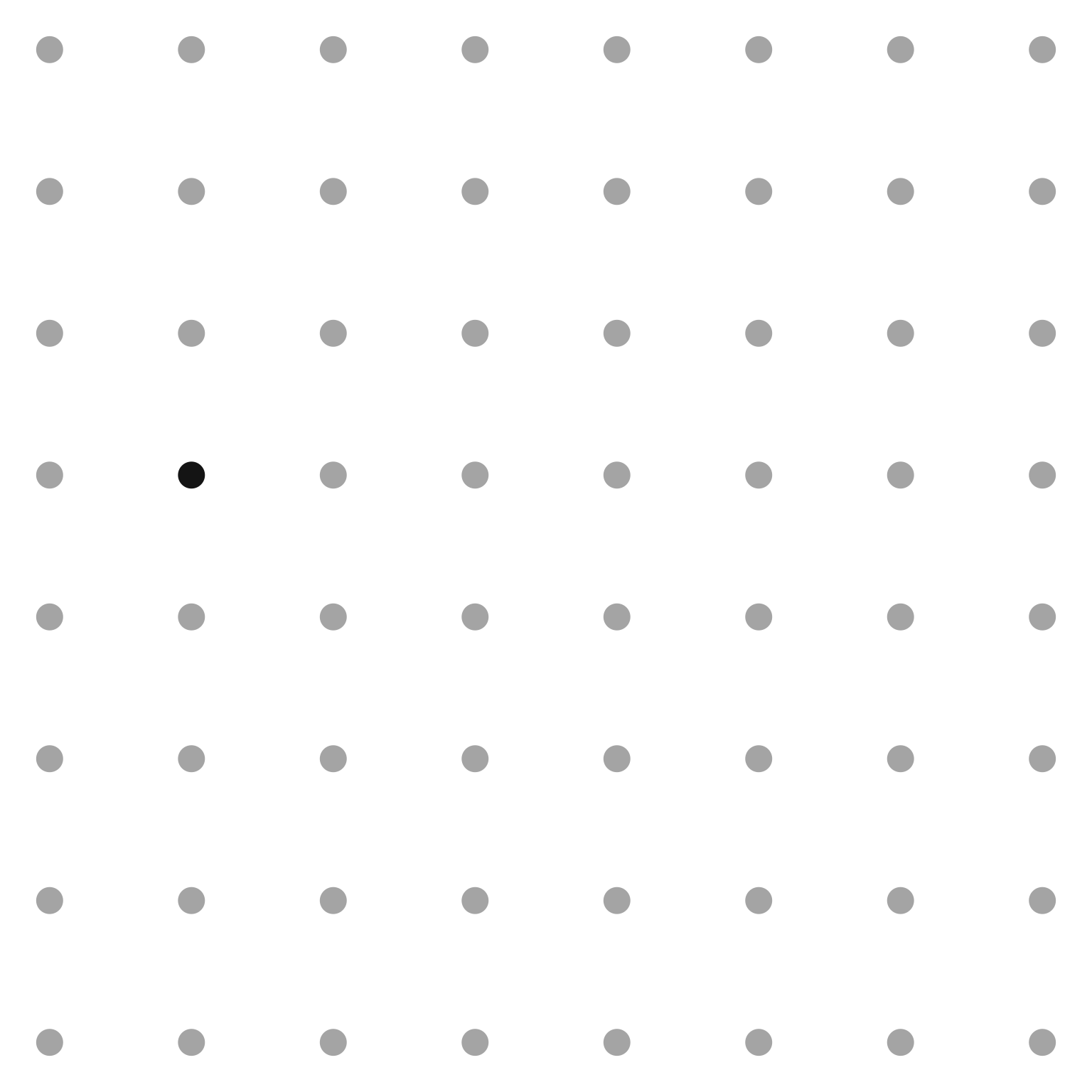 In this uniform field, no organization emerges. The viewer sees 64 identical dots arranged in a regular pattern, but perceives no subgroups, no hierarchies, no relationships beyond the overall grid structure itself. We will now systematically modify this base grid to demonstrate each perceptual principle.
