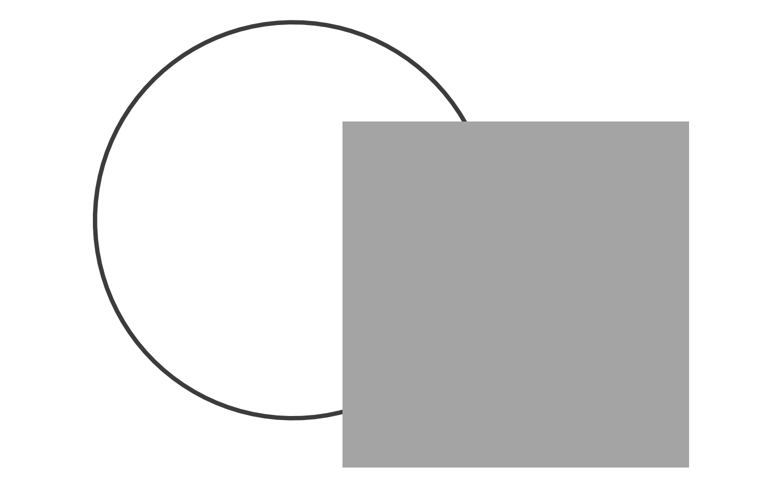 Though the rectangle obscures the circle’s center, we perceive a complete ring behind it. The visible arcs trigger automatic completion. This demonstrates why occlusion in visualizations need not confuse—the visual system reconstructs hidden information when sufficient cues exist.