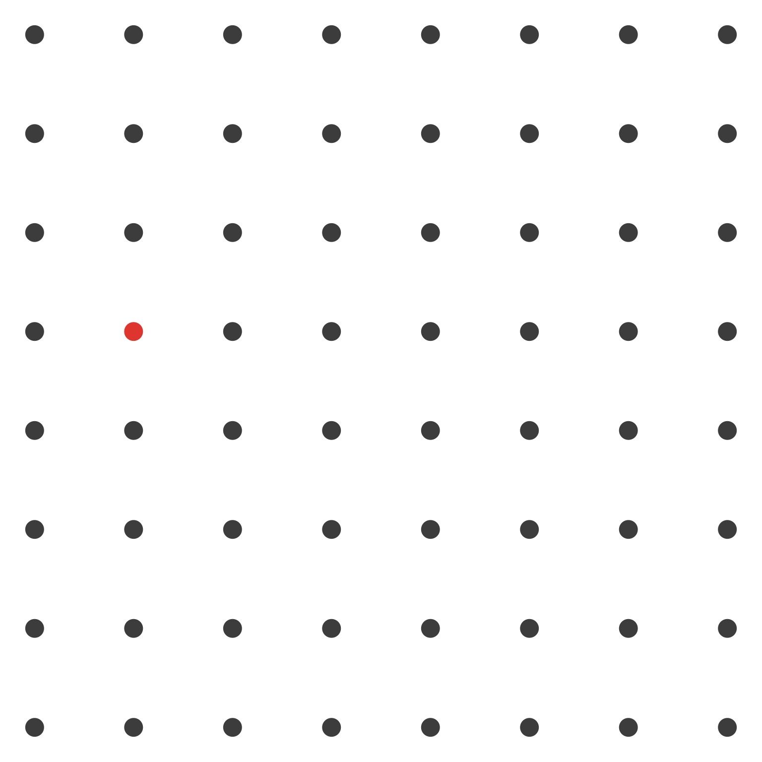 We demonstrate hue with black dots throughout the grid, except one red dot at the target position: