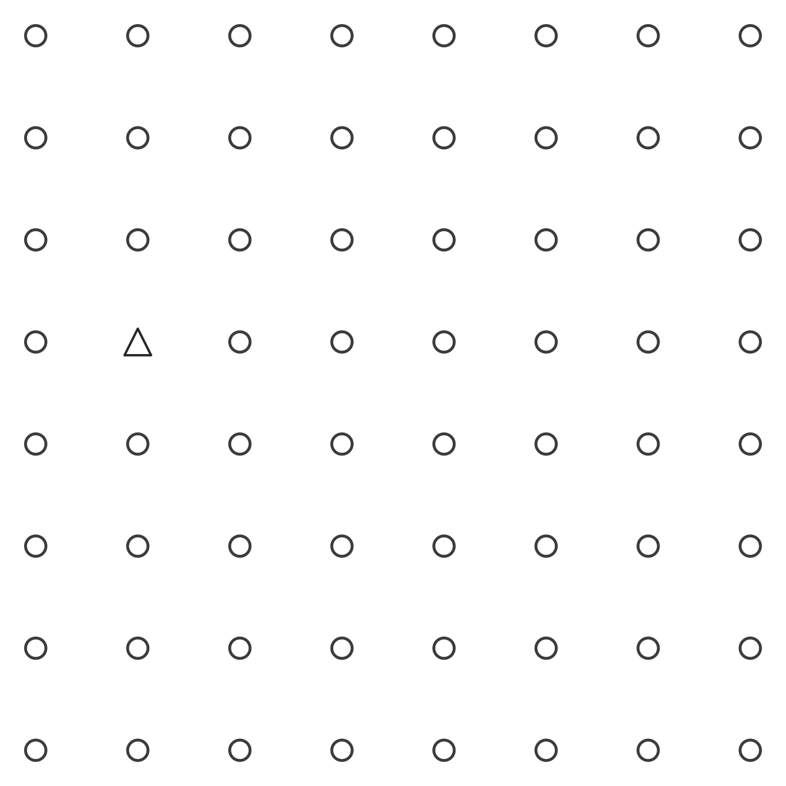 We demonstrate shape with non-filled circles throughout the grid, except one triangle at the same target position:
