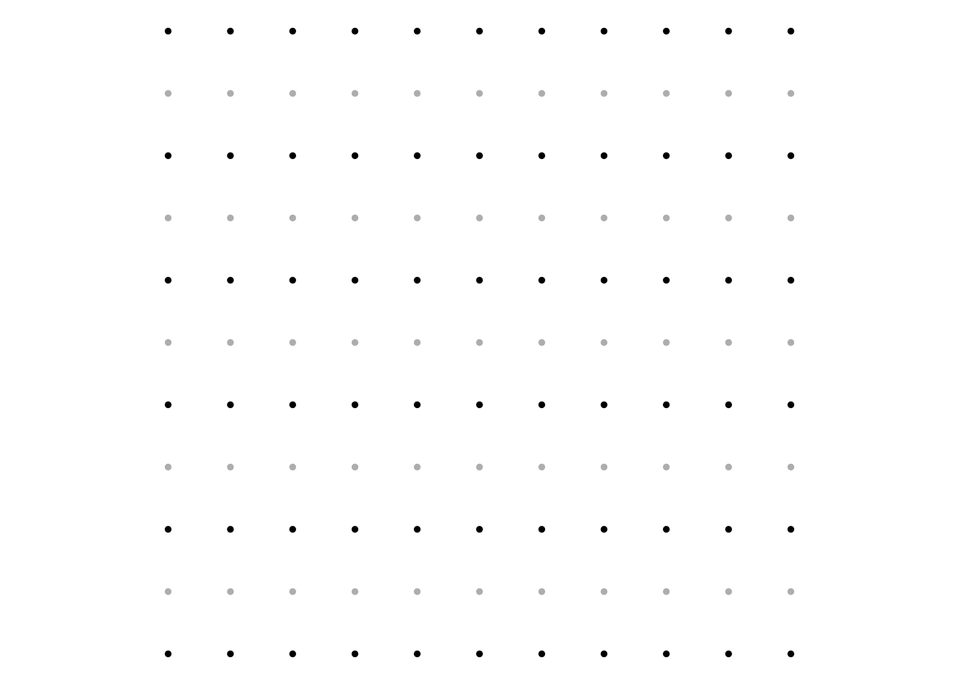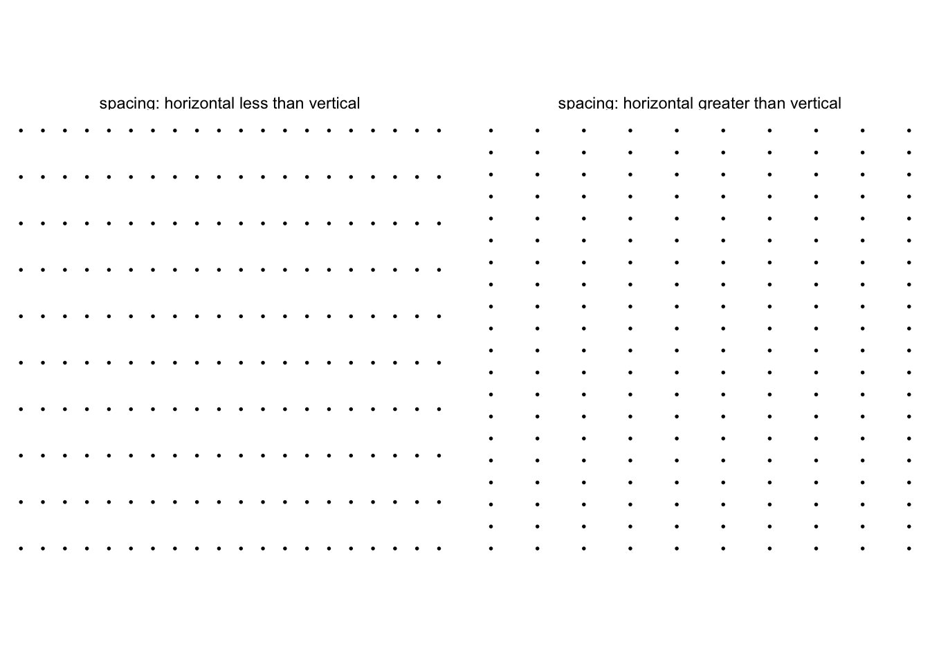 As with proximity, we can create the perception of groupings based on similarity of color, or shape, or another attribute. Here’s an example in which the horizontal spacing and vertical spacing are equal to demonstrate the color attributes ability to group: