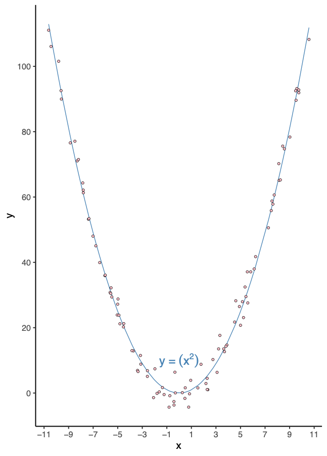 Graphical interpretation comes with limitations. Our accuracy in estimating the quantities represented in visual encoding depends on the geometries used for encoding. Consider how we might assess the relationship between data points and a fitted curve—specifically, whether the variation of observations around a fitted line is uniform or changes systematically across the x-axis.