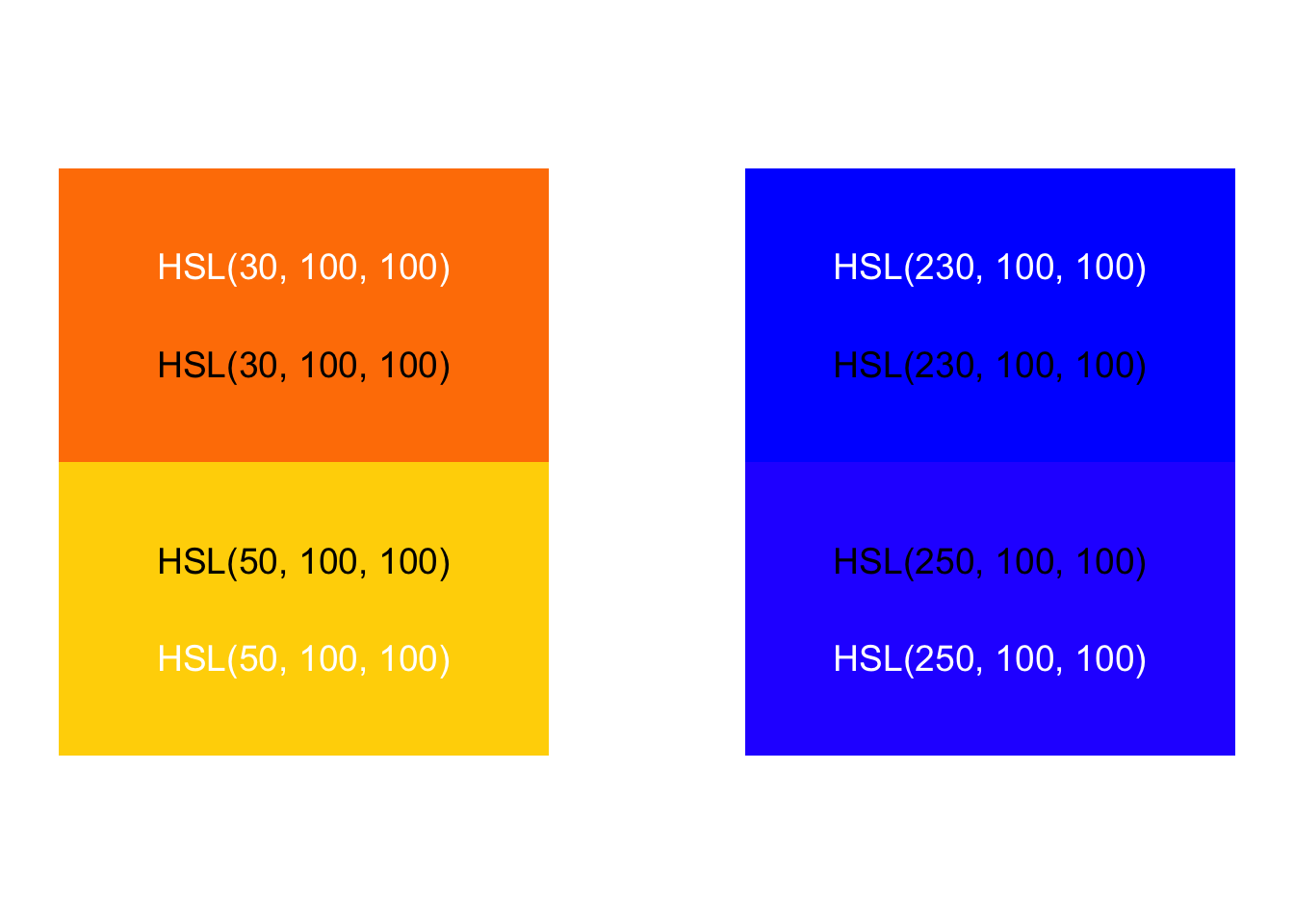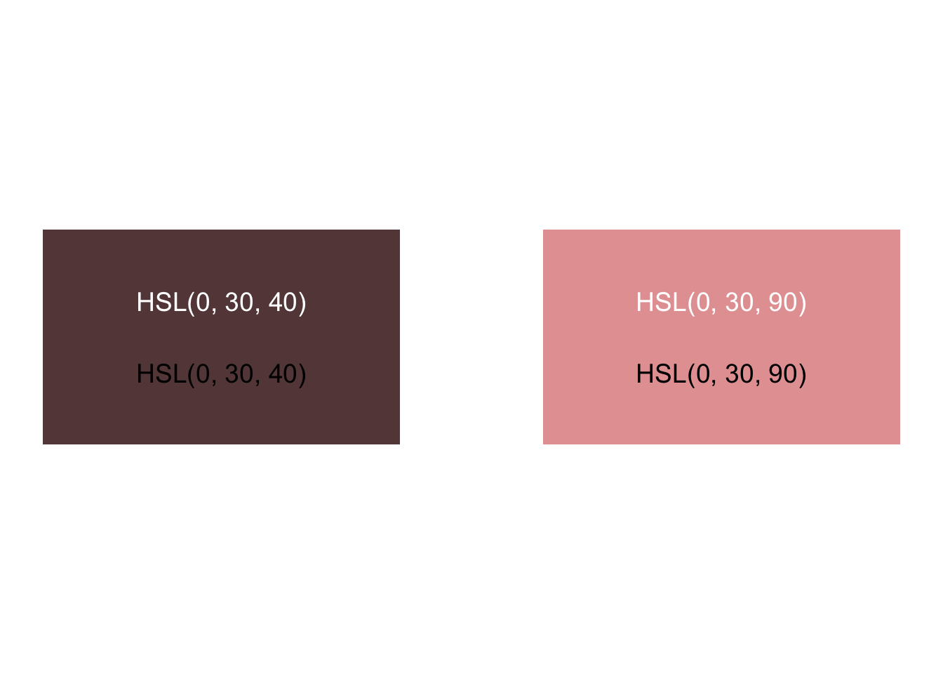 The problem exists in each channel or attribute of color. Let’s consider examples by comparing the hue, saturation, and luminance of two blocks. Do we perceive these rectangles as having the same luminance or brightness?