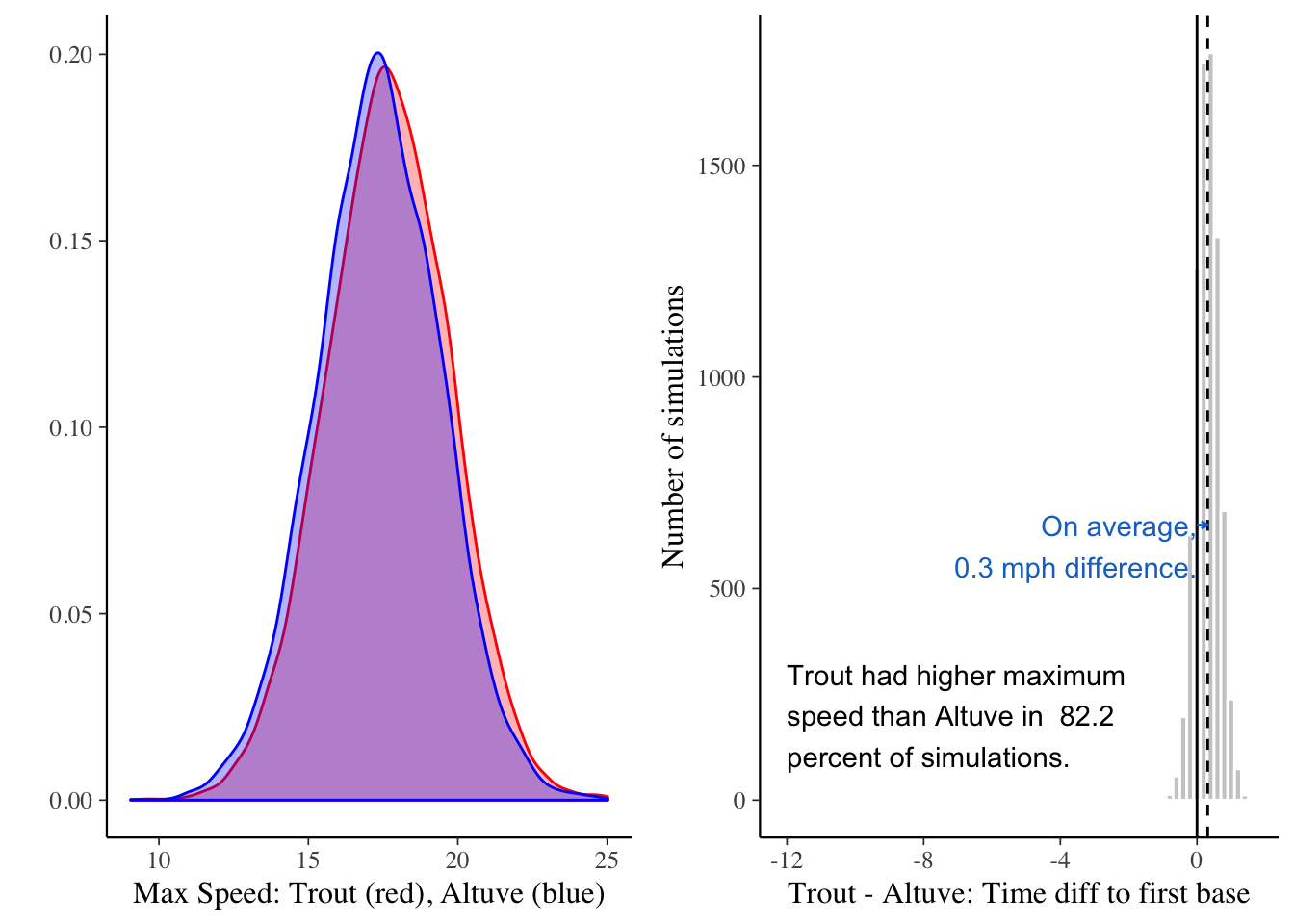 Consistent with models of time, the expected max speed gives Trout a (ever) slight edge.