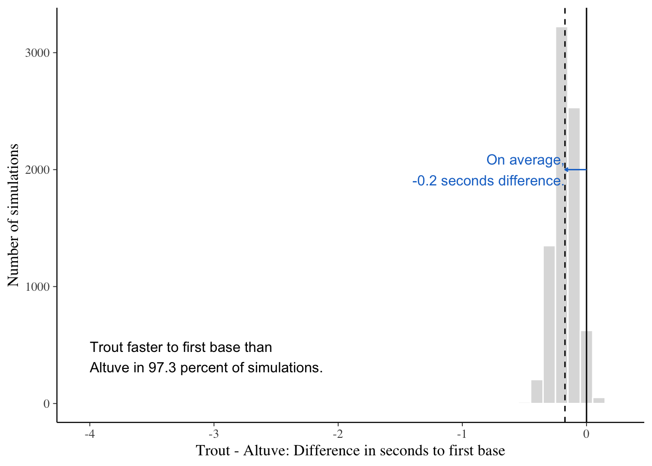 labs(x = 'Trout - Altuve: Difference in seconds to first base',